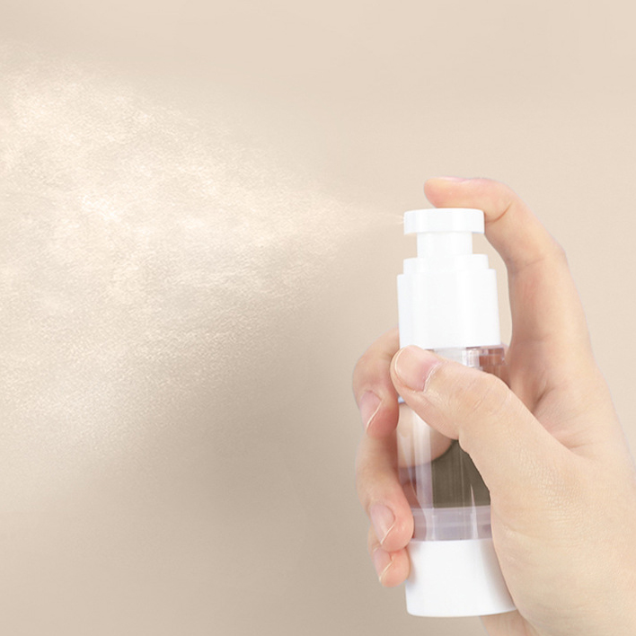 Druk op de pompkop om de lucht van de fles te verplaatsen en de Cacuum -plug duwt de vloeistof omhoog. |