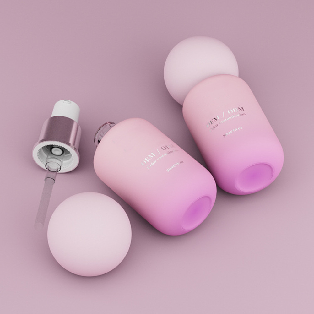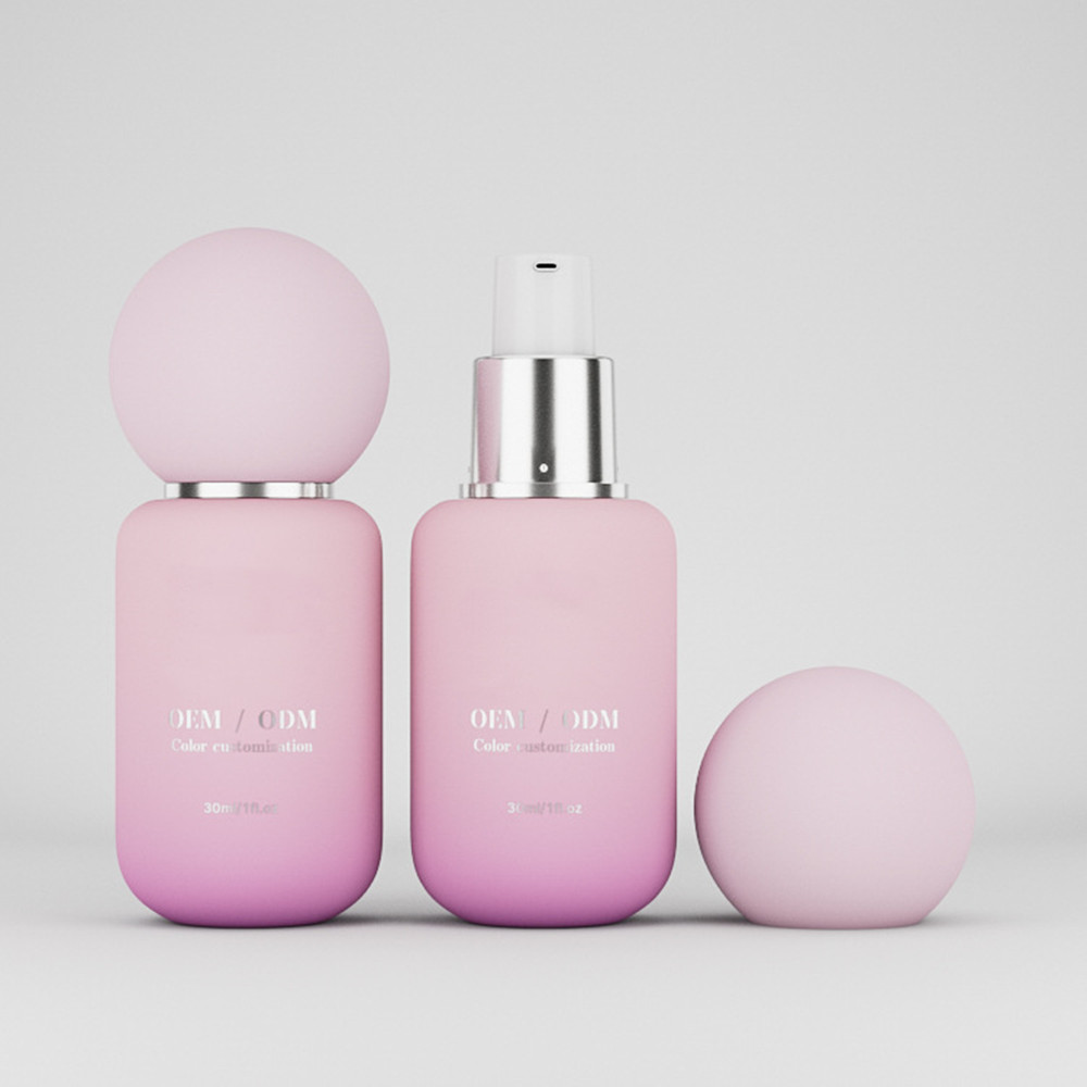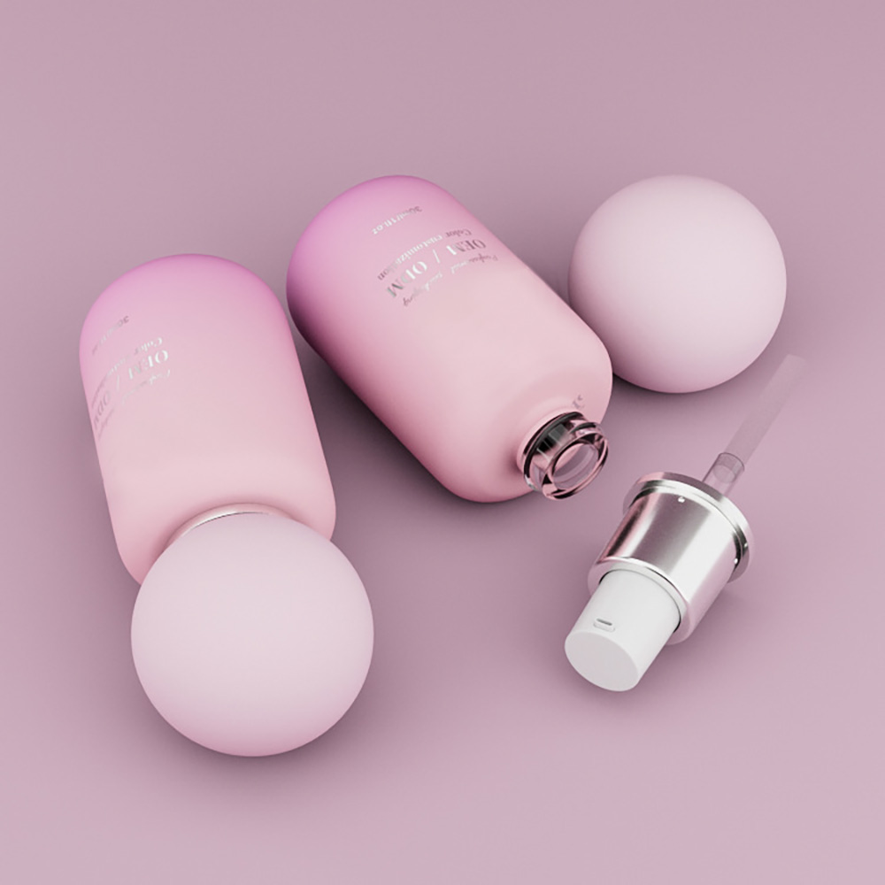 Neck screw, combined with a high-quality silver electroplated aluminum inner sleeve emulsion pump. This not only ensures the sealing performance and prevents the leakage and deterioration of the contents, but also enables precise and effortless control of the dosage each time. The spherical outer pressing cover design combines practicality with aesthetics. The smooth and round texture, combined with the soft pink color, complements the overall style and enhances the pleasure during use.