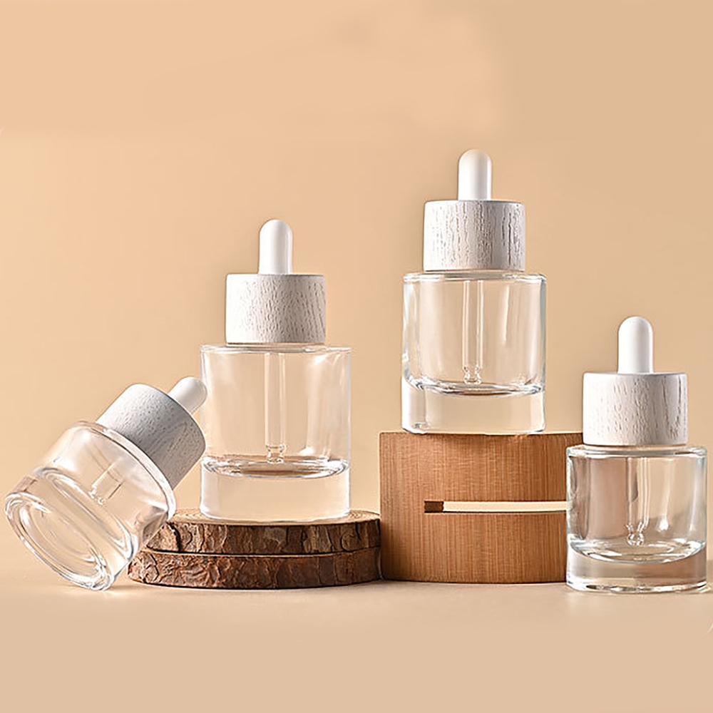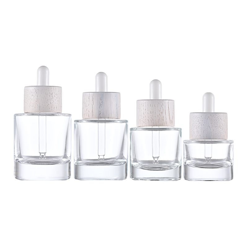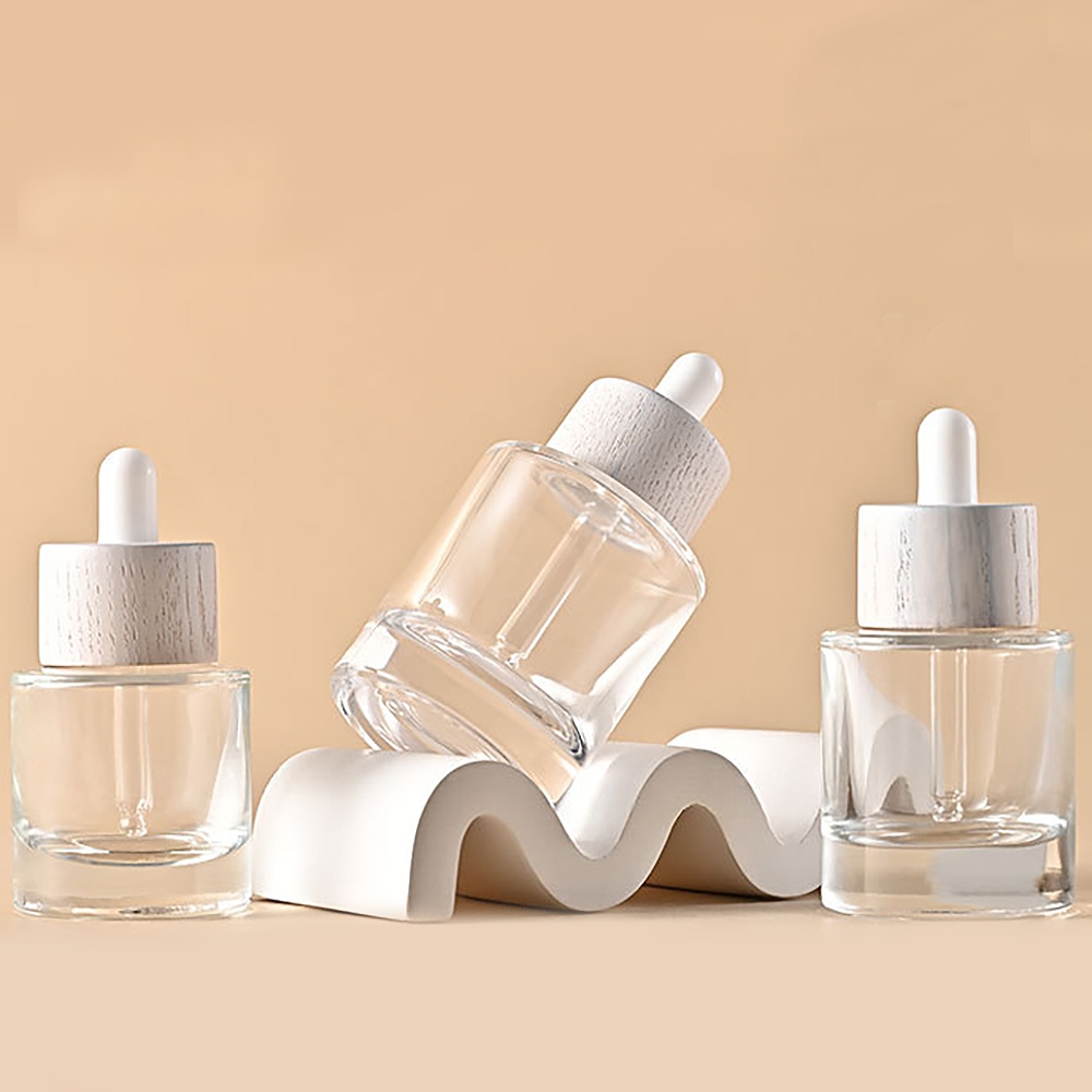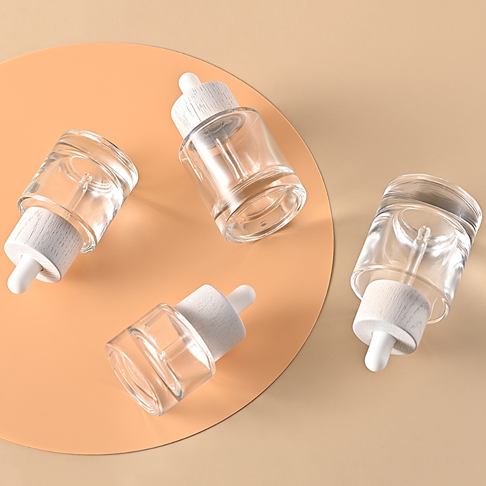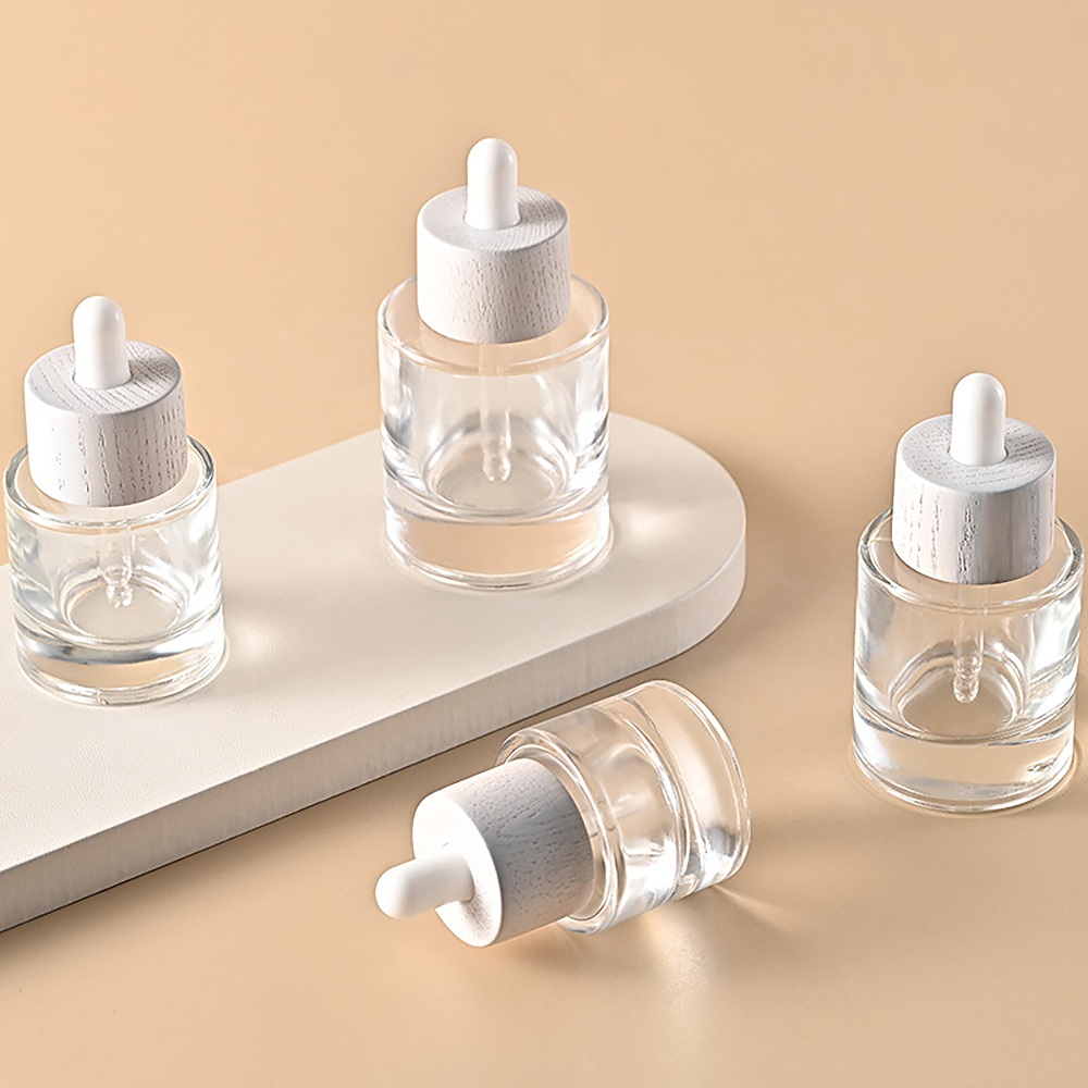 Transparent glass material, with high transparency. The threaded bottle mouth is convenient for filling. The thickened bottom of the bottle is not prone to breakage. Combined with the white waxwood ring dropper, the whole is in harmony.