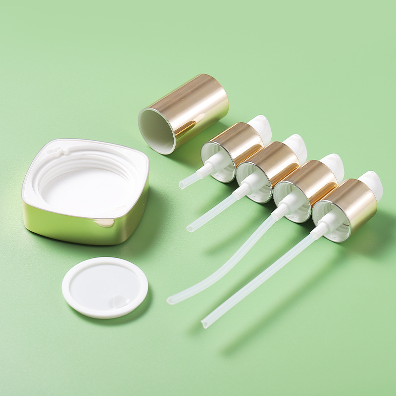 A bomba de CD interior de ouro é parejada com uma cobertura externa de eletroalumínio de ouro. A cor é brilhante e mais harmoniosa com o esquema de cores amarelas da garrafa. A boca de garrafa com fios torna o processo de preenchimento mais conveniente. A cabeça da bomba pode desenhar exatamente o líquido. Você pode pegar exatamente a quantidade que precisa, sem qualquer poluição.